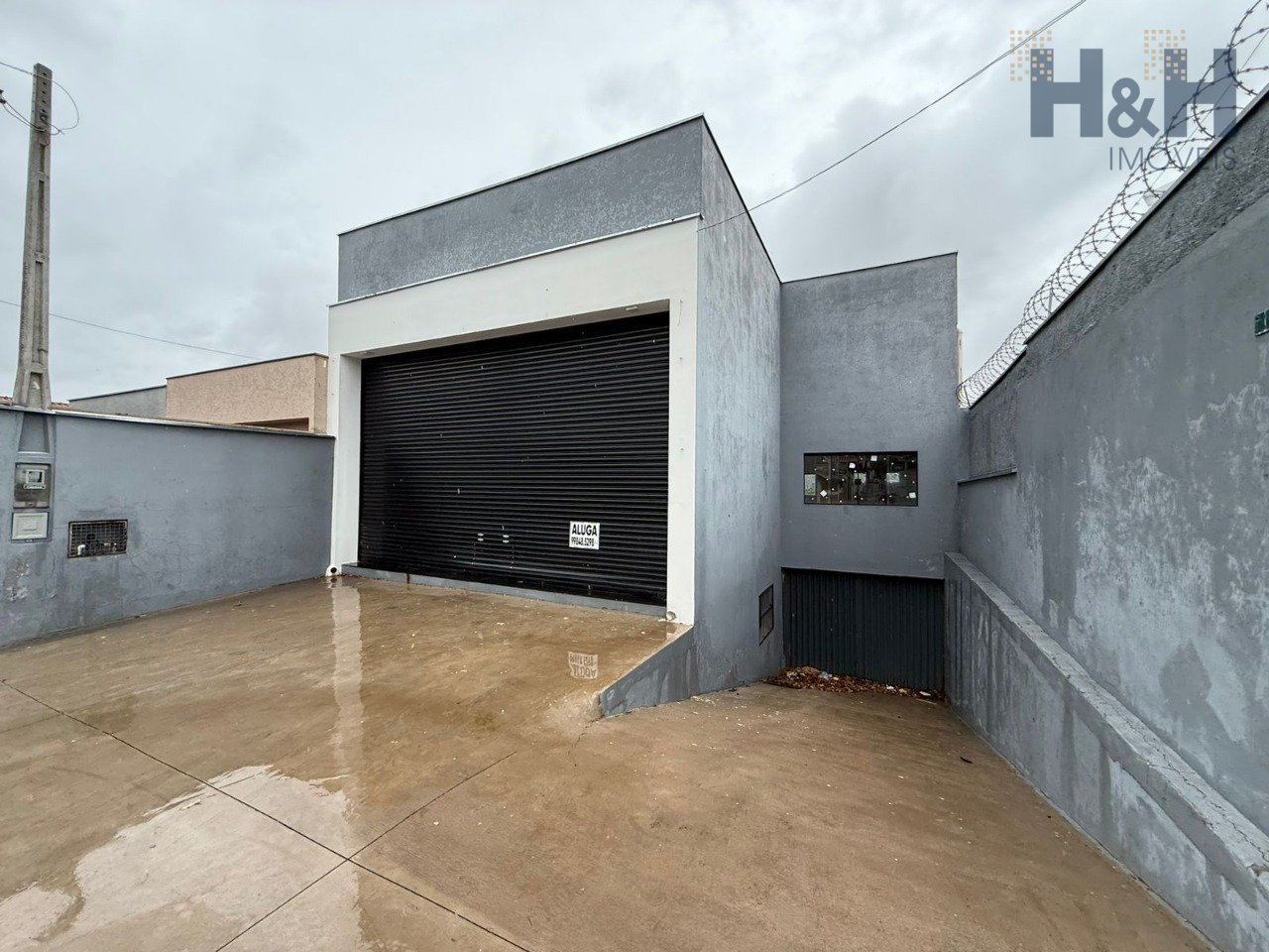 Um salão comercial (novo) com 2 pavimentos. Sendo o pavimento térreo com 163,94m² e o pavimento superior 174,49m², 2 banheiros e espaço para copa e escritório. Piso inferior com entrada exclusiva. Piso frio, portão automatizado e pé direito de 5m.
