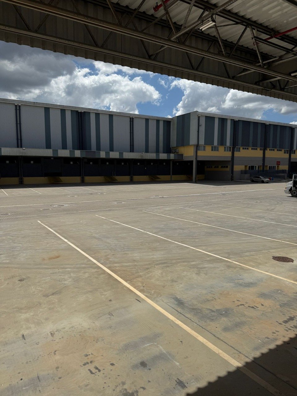 Características do galpão: * Pé-direito médio de 14,00 m. * Piso em concreto nivelado a laser com resistência de 6 ton/m². * Iluminação zenital. * Distância do vão entre pilares de 22,5 m x 20,00 m para o prédio A, 22,50 m x 22,50 m para o prédio B. * Sistema de proteção contra incêndio desenvolvido conforme as normas e especificações, composto de rede de hidrantes, extintores e sprinklers (classificação risco J4). * Vagas privativas para autos e carretas. * Docas elevadas para caminhões. * Iluminação LED. * Sistema construtivo: fechamento externo em bloco de concreto com altura de 3,60 m, fechamento lateral em telha metálica e cobertura em telhas metálicas do tipo Roll-on, com isolamento termo-acústico. Características do condomínio: * Área total de terreno: 155.000 m². * Portaria blindada e sistemas de segurança em todo o empreendimento. * 250 vagas de estacionamento para automóveis. * 143 vagas de estacionamento para carretas (sendo 108 docas). * Estacionamento para visitantes e de espera de carretas. * Estrutura de apoio com área administrativa e de segurança com previsão para ambulatório. * Ruas com espaço para manobra de carreta de grande porte. * Banheiros e vestiários femininos e masculinos. * Refeitório. * Gerador de Emergência para função de segurança de sistema de incêndio, bombas de recalque, sistema de pressurização de água, iluminação de área externa. * Estrutura de apoio para motoristas.