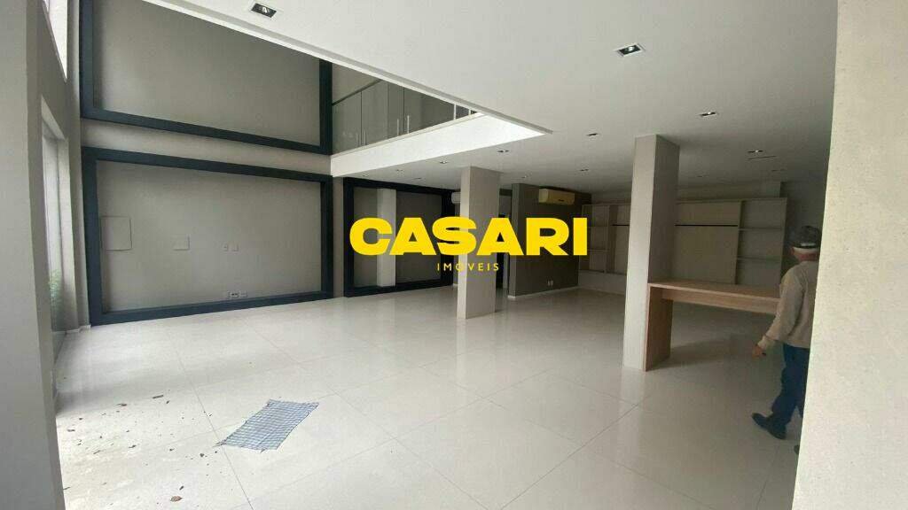 Salão comercial de alto padrão para locação na Vila Gilda, em Santo André, com 170 m² de área construída e excelente visibilidade. O pavimento inferior conta com pé-direito duplo, fachada em vidro que valoriza a iluminação natural, dois lavabos completos, piso de madeira e copa também com acabamento em madeira. O mezanino, com acesso por escada, possui assoalho de madeira e um depósito fechado, ideal para organização. Equipado com ar-condicionado, luminárias modernas e infraestrutura pronta para sistema de segurança com câmeras. O imóvel ainda oferece recuo frontal com 4 vagas de estacionamento. Localização estratégica, ao lado de um shopping e próximo ao centro da cidade, com grande fluxo de pedestres e fácil acesso às principais vias.