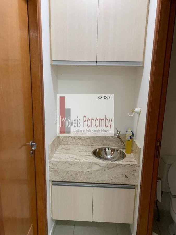A sala comercial possui 41 m², 2 aparelhos de ar condicionado, 2 banheiros e copa. Fica com 1 estante de parede inteira e está pronta para uso, inclusive com porcelanato. O edifício possui 10 elevadores, salas para reuniões ou eventos, um shopping em anexo com restaurantes, café, entre outros, e 2 pavimentos de estacionamento cobertos.
