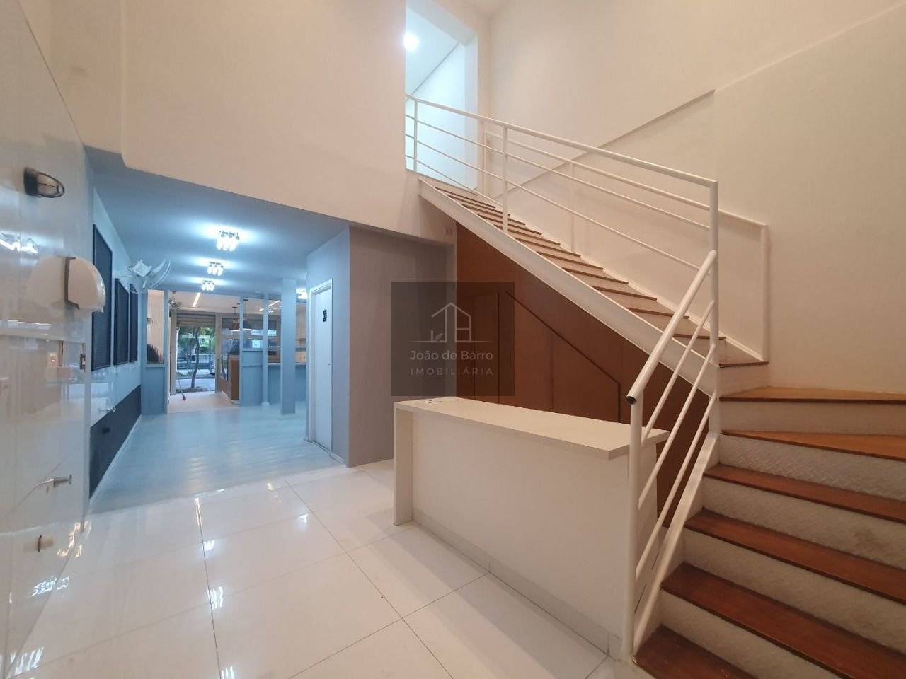 PISO INFERIOR: BALCÃO DE ATENDIMENTO; SALÃO COM AR-CONDICIONADO; BANHEIRO; DESPENSA. MEZANINO: LAVABO E BANHEIRO; COZINHA; COPA; SALA COM AR-CONDICIONADO.