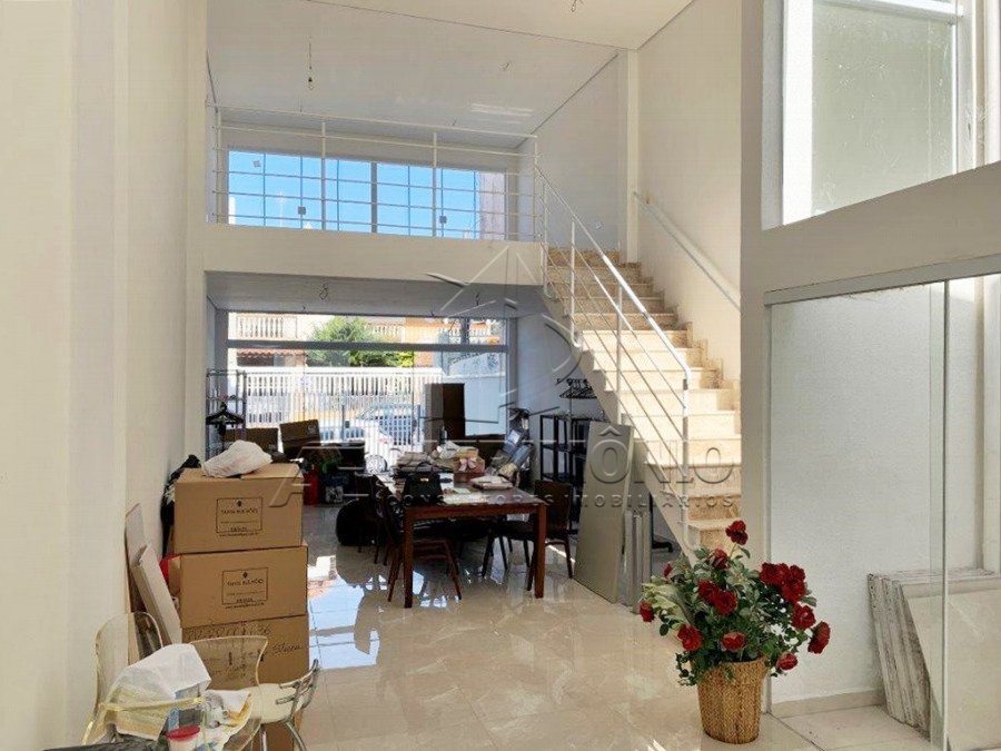 Salão comercial de 153,90m² totais com 2 banheiros e 2 vagas de garagem descoberta. Acabamento Interno: Todo em piso porcelanato brilhante, pé direito duplo, escada em mármore e 2 mezaninos com guarda corpo em alumínio e teto em gesso. 2 banheiros sendo 1 adaptado para deficiente. Acessórios do Imóvel: Infraestrutura para ar condicionado. Descrição do Bairro: Infraestrutura completa em comércios e serviços. Descrição do Entorno: Próximo a mercados, escolas, farmácias, posto de combustível e transporte público. Fácil acesso à zona industrial.