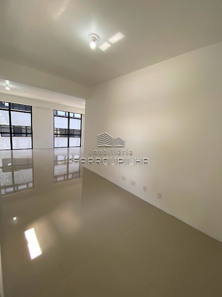 Sala aérea no Ed. Centro Com. Independência com 47,25m², um banheiro e box de garagem. Piso revestido com porcelanato.