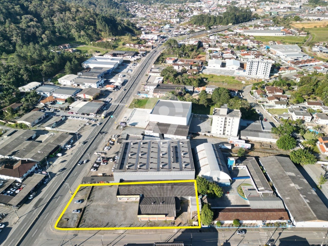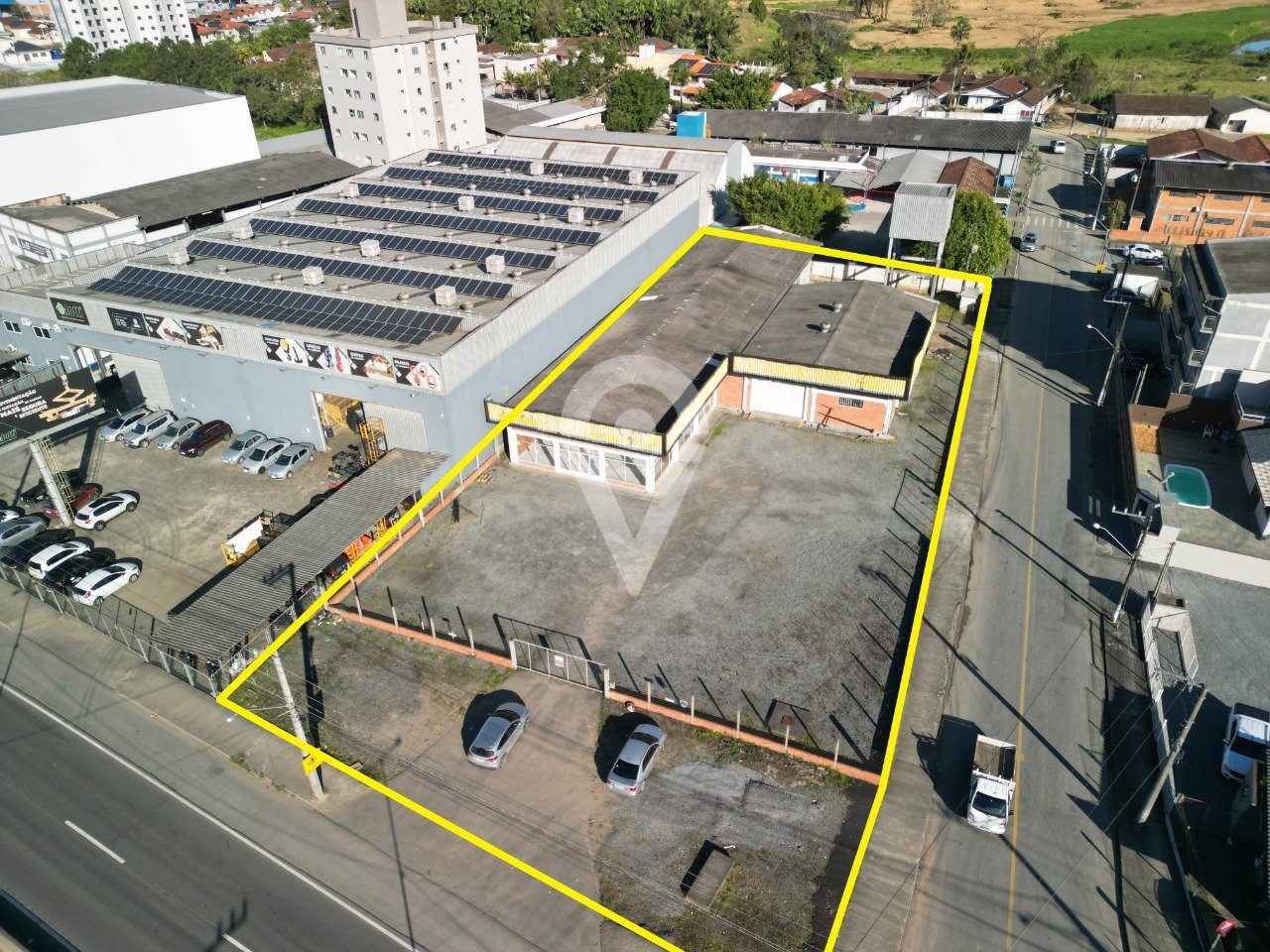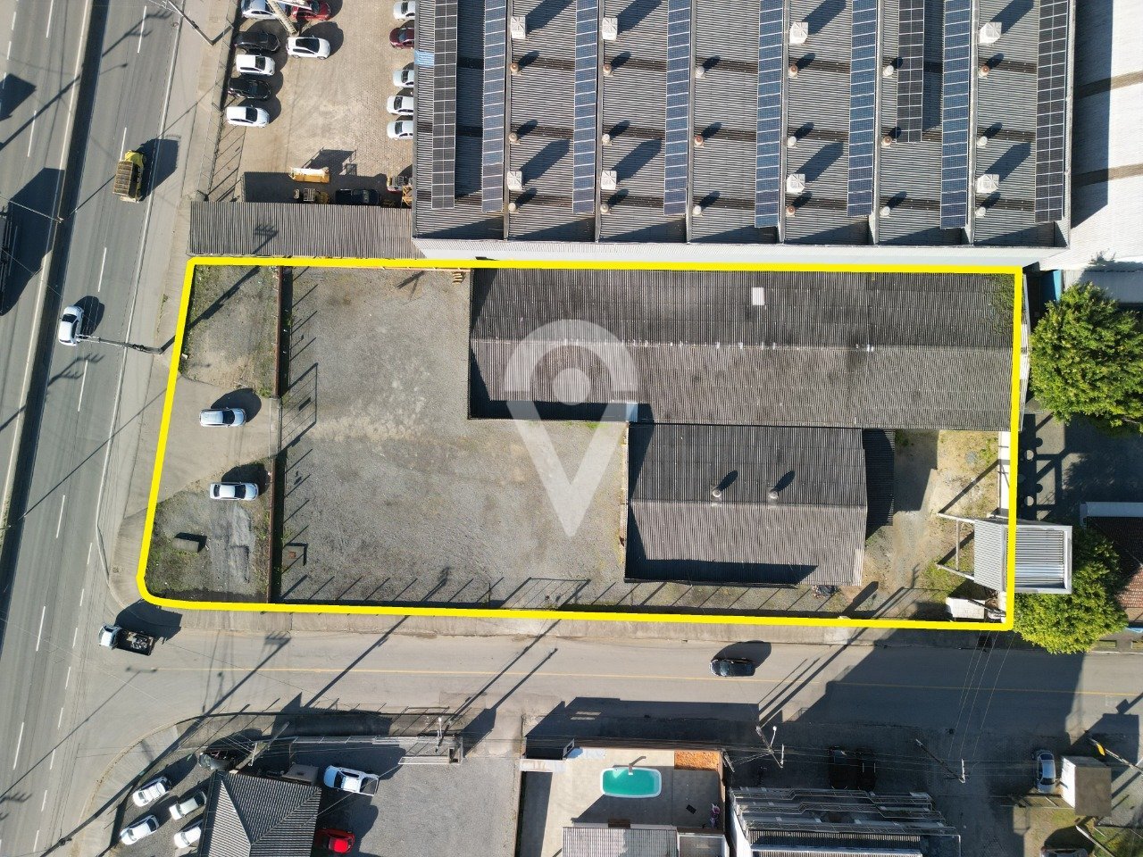 Sala comercial com 935,95 m². Com estacionamento e pátio para manobra. Amplo espaço.