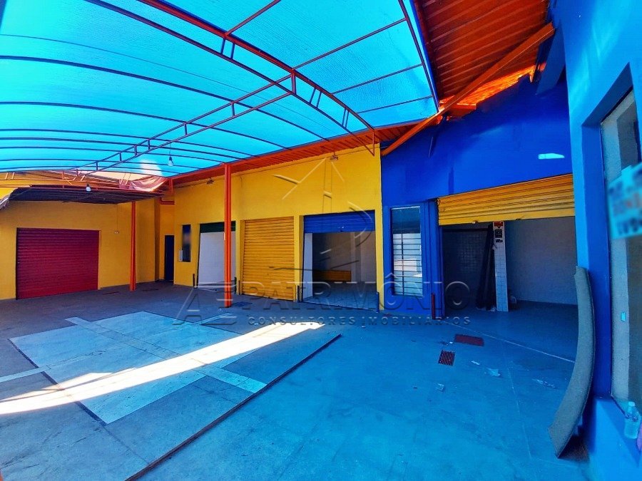 Sala comercial com fachada de vidro, toda em piso cerâmico e paredes brancas.