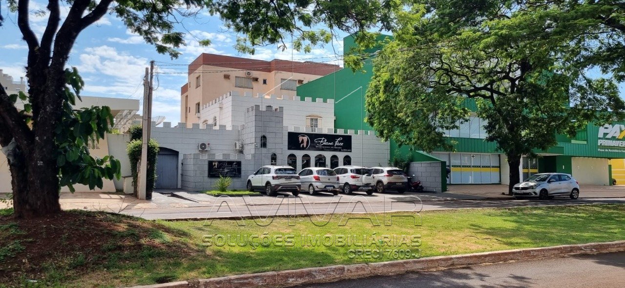 Clínica com recepção, sala de espera, consultórios, escritório, sala de esterilização, banheiro e vagas de estacionamento. Residência com sala de estar, cozinha, suítes com armário, quartos com armário, banheiro social, lavabo, área gourmet, área de serviço e garagem para carros.