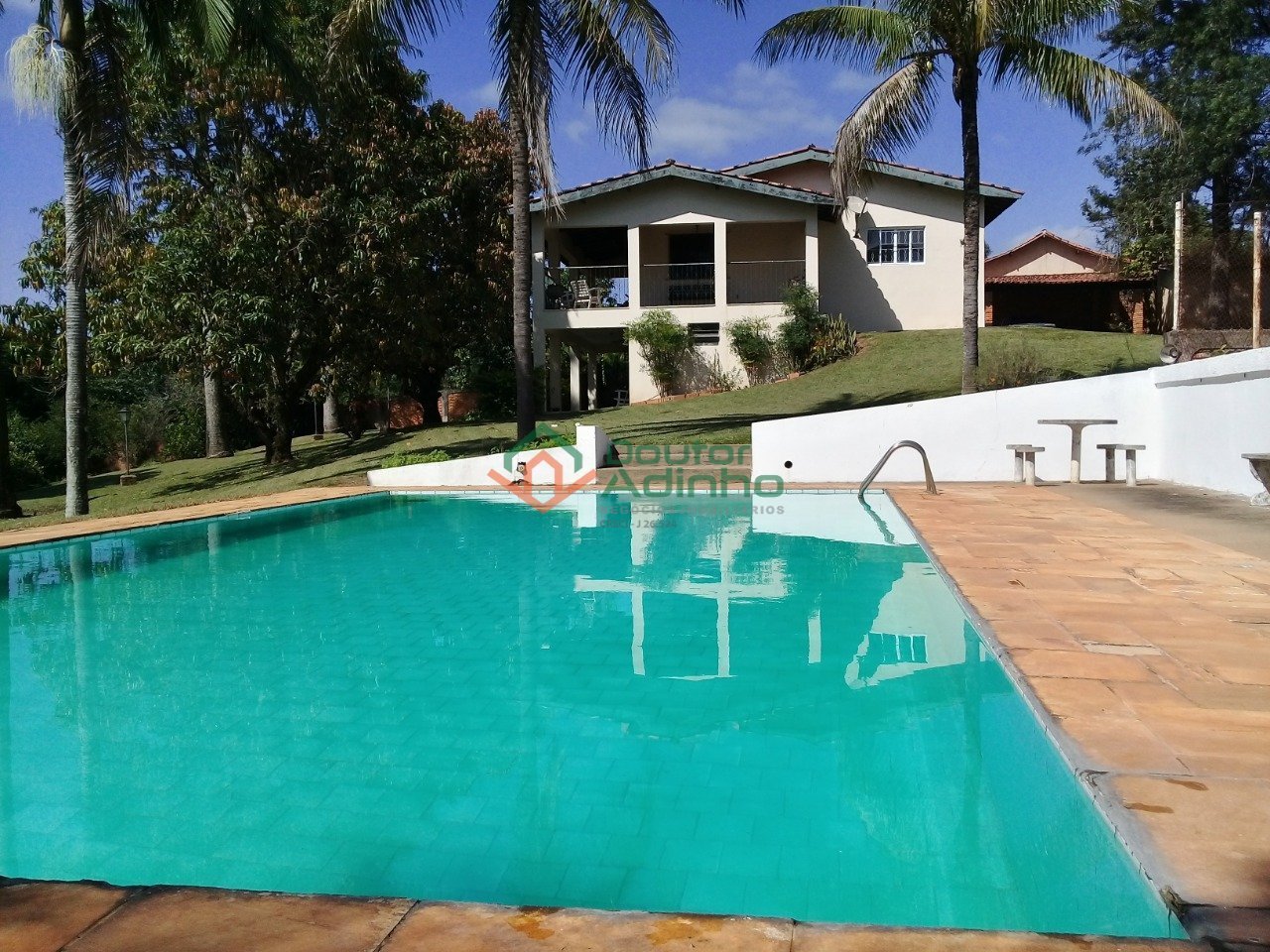 Imóvel para venda, localizado no Condomínio de Chácaras Água Santa. Chácara com aproximadamente 12.500 m² que possui casa sede com 03 dormitórios com armários embutidos, sendo 01 suíte, sala de estar/TV, cozinha, banheiro social, varanda, sacada e garagem coberta para 02 veículos. A casa de hóspedes possui 02 dormitórios, sendo 01 suíte, banheiro social, sala de estar/TV, cozinha, varanda, área de serviços e garagem coberta para 01 veículo. O imóvel também possui casa de caseiro, piscina de azulejo, quadra poliesportiva, salão de eventos, playground, casa de boneca, área gourmet com churrasqueira, quarto de ferramentas, canil e pomar. Agende uma visita com um de nossos corretores.