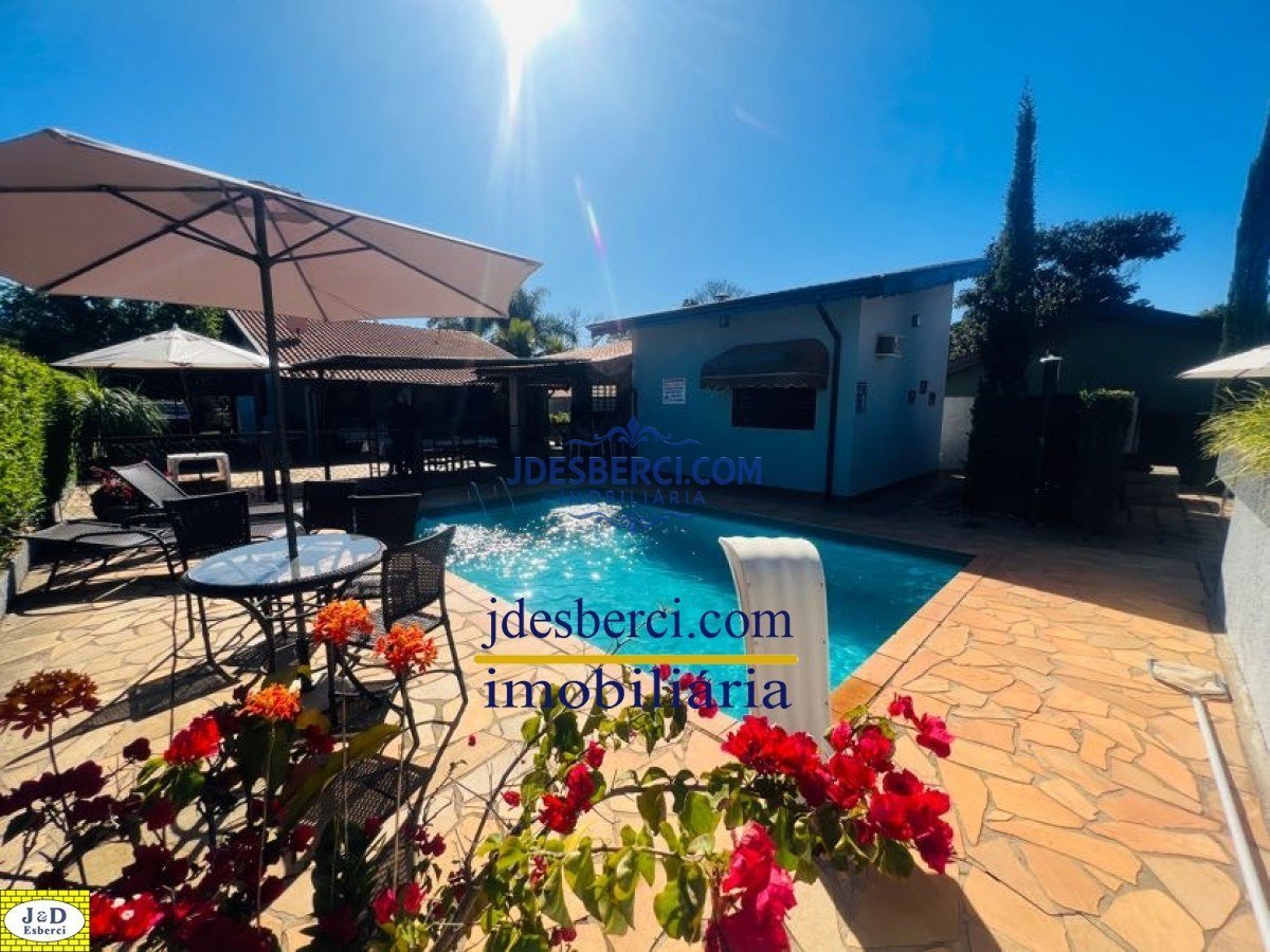 Uma linda chácara com 2 dormitórios sendo um suíte, sala ampla, cozinha, copa, banheiro social, varanda frente e fundo, pergolado e ar condicionado na casa. A área gourmet tem 55m² com churrasqueira, banheiro, um dormitório com ar condicionado, piscina, jardim externo com lareira, área esportiva 325m² com drenagem, quadra de beach tennis, jardim, área trafegável toda com calçada e portão eletrônico.