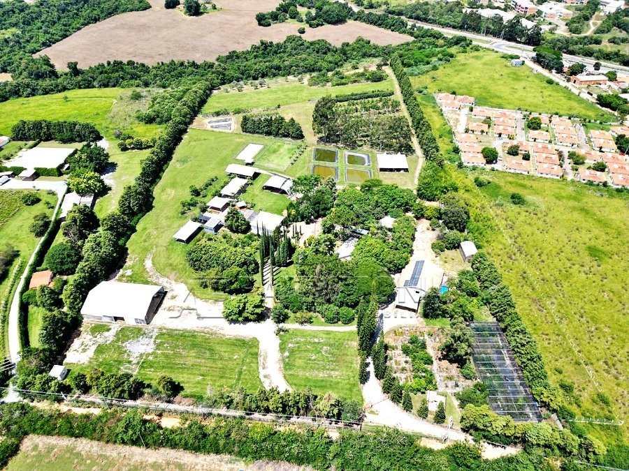 Área localizada em área urbana. Corredor de circulação rápida, zona de chácaras urbanas. Pode prédio. Área de 98.862,55 m², em frente a uma universidade. Área construída: 1.031,51 m² (casa sede com 3 suítes, sendo 1 delas com closet), mezanino, sala com 3 ambientes (estar, jantar e uma terceira sala), cozinha, despensa e área de serviço. Casa com varanda no primeiro andar e também no térreo. Casa de caseiro. Galpão para guarda de utensílios, acabamentos, equipamentos e veículos. Inclui tratores e diversos equipamentos para manutenção da propriedade. Área da churrasqueira integrada com piscina aquecida e spa. Horta acoplada à casa. Galpão lonado com piso de concreto polido de 600 m² (20x30 metros). Campo de futebol, campo de beach tennis, 4 lagos pequenos. Sistema de segurança via câmeras e monitoramento em todo o espaço. Dois canis para cachorros. Terceira casa de sítio para acomodar funcionários. Venda de porteira fechada! Sítio de alto padrão em área urbana. Localização privilegiada em corredor de circulação rápida e zona de chácaras urbanas. Área total: 98.862,55 m². Área construída: 1.031,51 m². Infraestrutura completa com casa sede ampla e confortável, 3 suítes (1 com closet), mezanino e varanda nos dois andares.