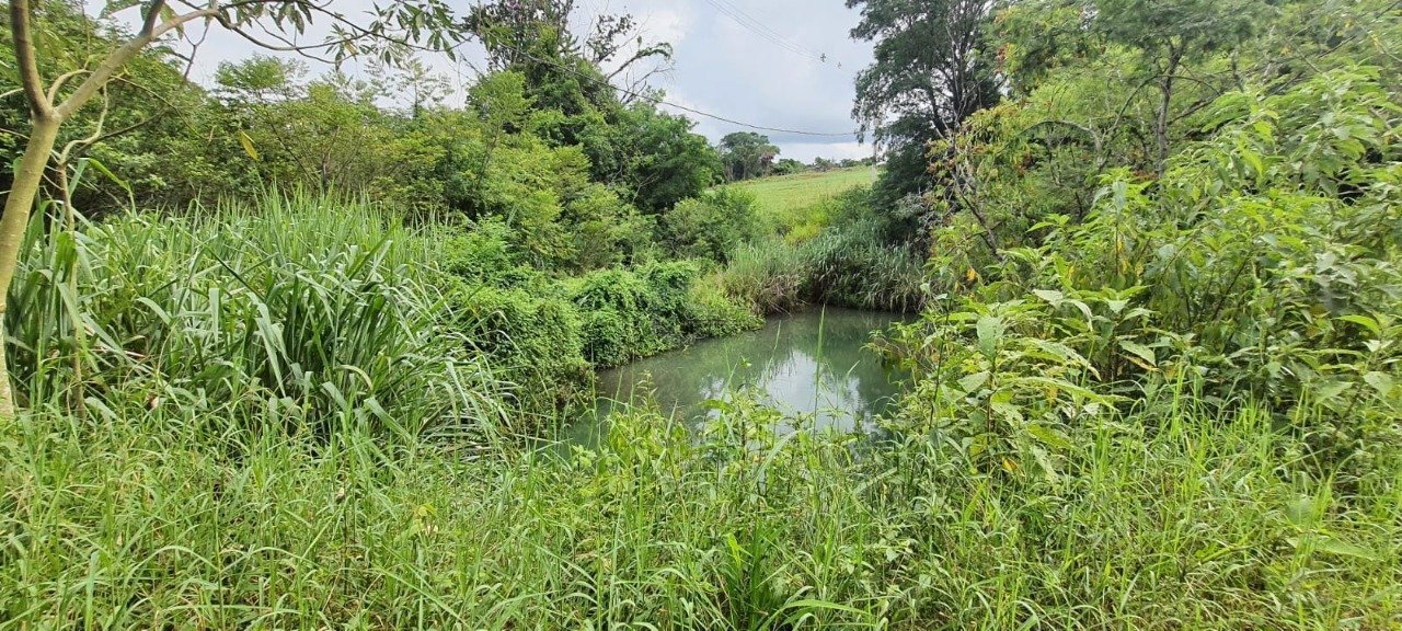 Chácara com água, energia e afluente no fundo. Terreno com leve aclive.