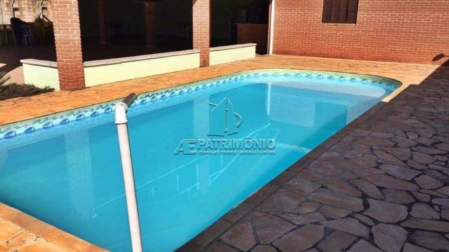 Chácara com 2 cozinhas, 4 banheiros sociais, 2 suítes e garagem descoberta para 30 carros. Acabamento Interno: Cozinha com churrasqueira. Salão de festas com 180m². Acabamento Externo: Piscina com 9x4. Garagem descoberta para 30 carros.