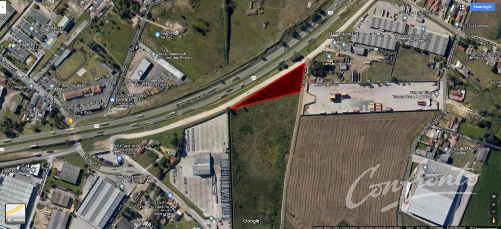 Terreno localizado na BR-116, 8745 (Contorno Leste), São José dos Pinhais - Marginal, esquina com a Rua Etelvina Farias, 254. Características do Terreno: - Área Terreno: 5607,77m² (aprox.) Valores: - Valor Aluguel: R$ 11.200,00 - IPTU 2025 (mensal): R$ 382,61 Proximidades: - Conduspar - Transauto - DAF Valor de aluguel divulgado é com desconto para pagamentos em dia e está sujeito a alteração sem prévio aviso.