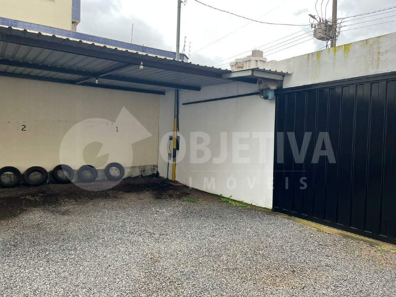 Terreno comercial no Bairro Martins, localizado na região com muitas clínicas, com 350m² de área total (plano). Todo murado e com portões, em brita e com local coberto para estacionamento.