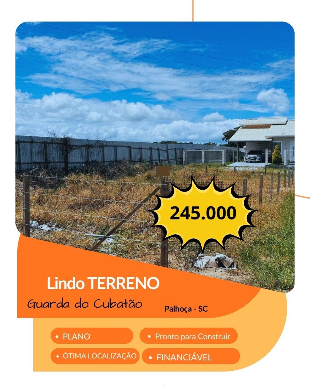 Terreno plano Excelente terreno de 300m² (10X30) Ideal para sua casa própria Valor 245 mil Aceita financiamento Aceito propostas.